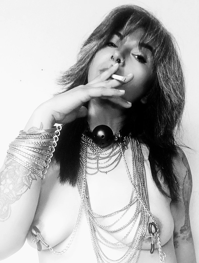 She smokes, which is really hot, so she would taste of nicotine when we kiss, which I really like to smell and taste, by the way.